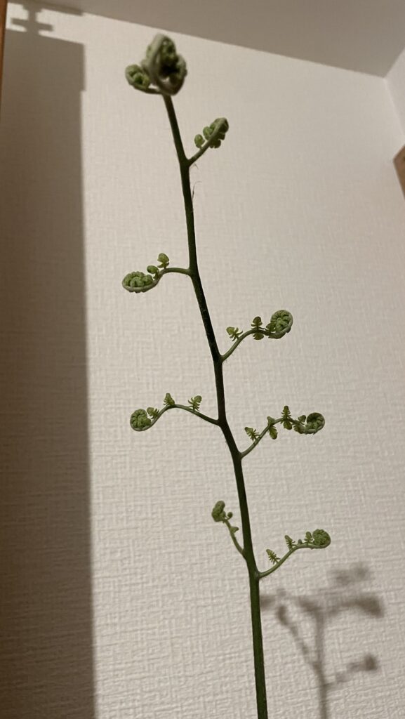 キンモウコウ シダ植物 2025.07.10 2025.05.14 育て方 ☀️明るい場所が好き レースカーテン越し 柔らかく日差しが入る場所 ☔️水やりは春から秋は土の表面~少し下まで乾いたらたっぷり ☘️加湿を好むので葉水は多め ⛄️冬場は水やりの頻度は少なく 土が完全に乾いて少したったらあげる ※室内で温かい場合は春~秋と同じ感じ 成長記録 7/10 自然の造形美。美しい。