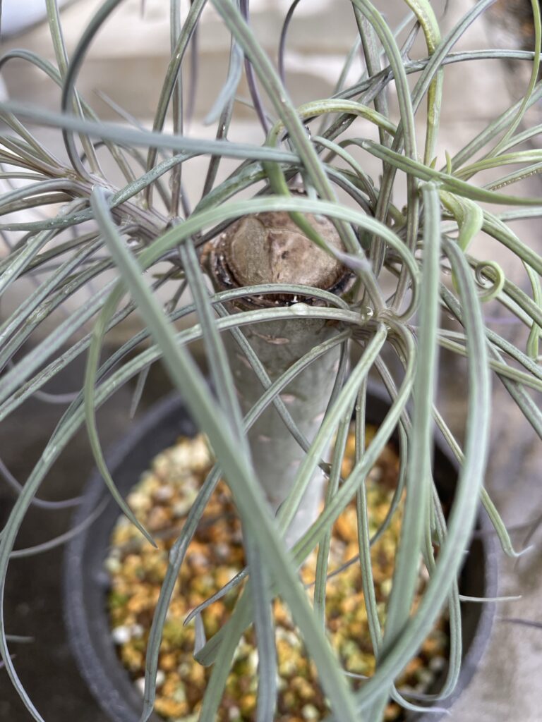クレイニア・ネリイフォリア 多肉植物 2025.10.30 2025.05.24 Kleinia neriifolia モンキーツリーまたはキャンドルプラント 育て方 ☀️ ☔️ ⛄️ 成長記録 2021/4/9 茨城県某所美野里の花木センターで購入。 2021/11/15 2022/7/12 別の茨城県某所徒長する。 2023/7/12 2024/9/13 葉が全て落ちた後また生えてくる。 2024/10/16どんどんヒョロる。 2025/4/21 千葉県某所一か八か思い切って強剪定。 2025/5/19 新芽! 2025/10/30 枝4本でてきた!