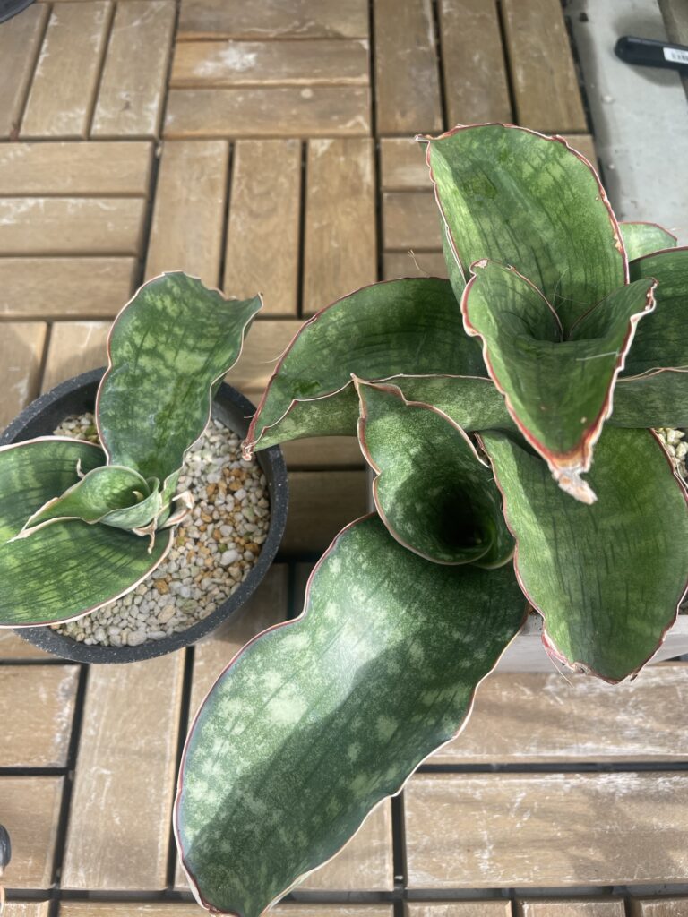 サンセベリア ドラゴンウィング サンセベリア 2025.09.29 2025.05.20 リュウゼツラン科サンセベリア属 原産地:アフリカ タンザニア 育て方 ☀️高温で明るい場所を好む。真夏の直射日光は避ける。 ☔️乾いてから3日後にたっぷり。冬は断水。 不要。 ⛄️10℃以下で休眠。 成長記録 2022/5/6 栃木某所花木センターで購入。初のサンセベリア。 2023/7/12 茨城某所 2024/10/6子株が出てくる 2025/4/21子株を切り分けたら新芽が枯れた。 購入 子株出る 葉が閉じる 新芽枯れる 2025/9/29 また子株が成長した。
